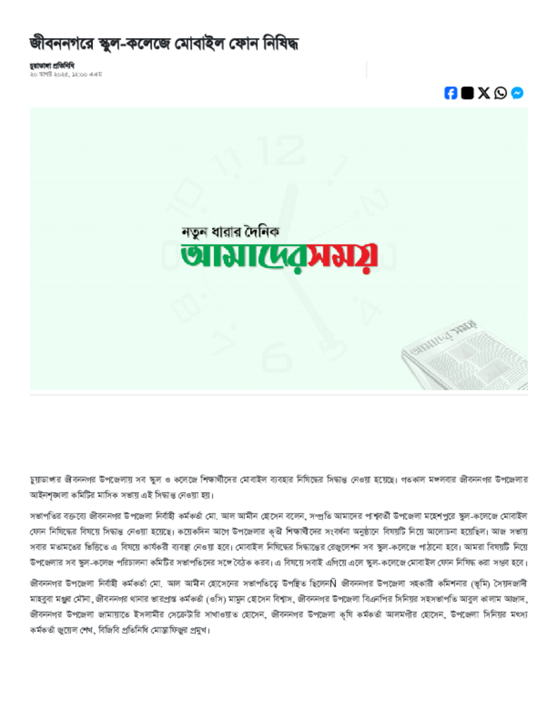 জীবননগরে স্কুল-কলেজে মোবাইল ফোন নিষিদ্ধ.pdf Published on 20 August 2025 Newspaper দৈনিক আমাদের সময় Category Others Download