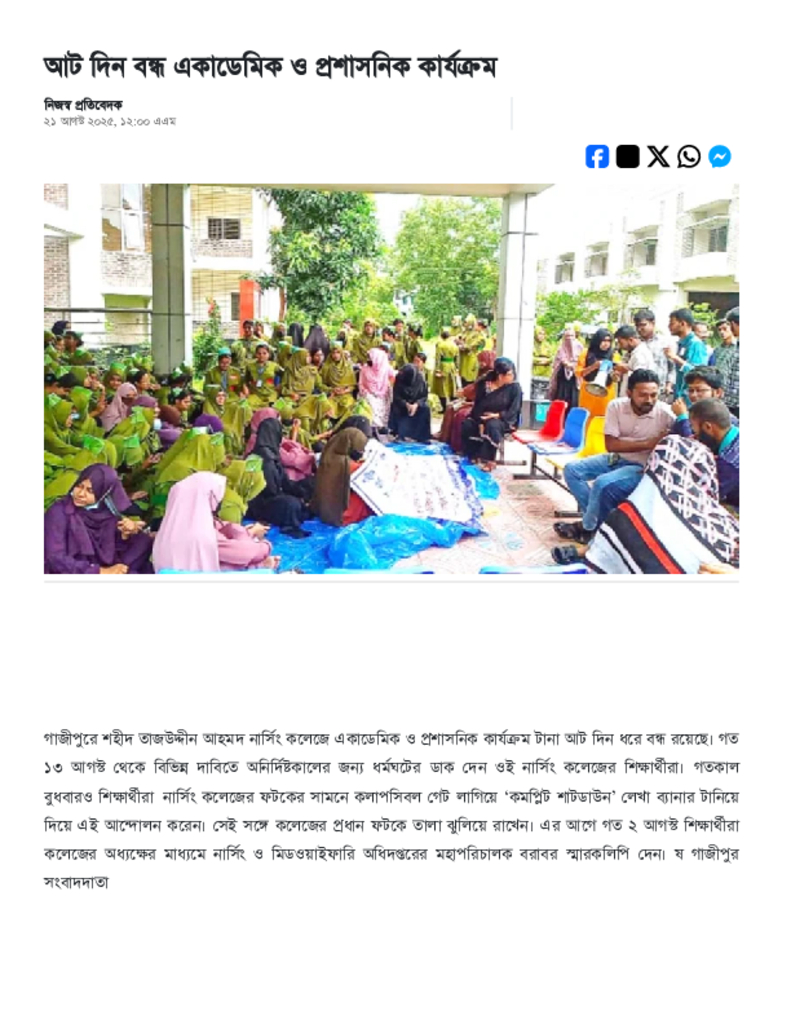 আট দিন বন্ধ একাডেমিক ও প্রশাসনিক কার্যক্রম.pdf Published on 21 August 2025 Newspaper দৈনিক আমাদের সময় Category Others General Education Download