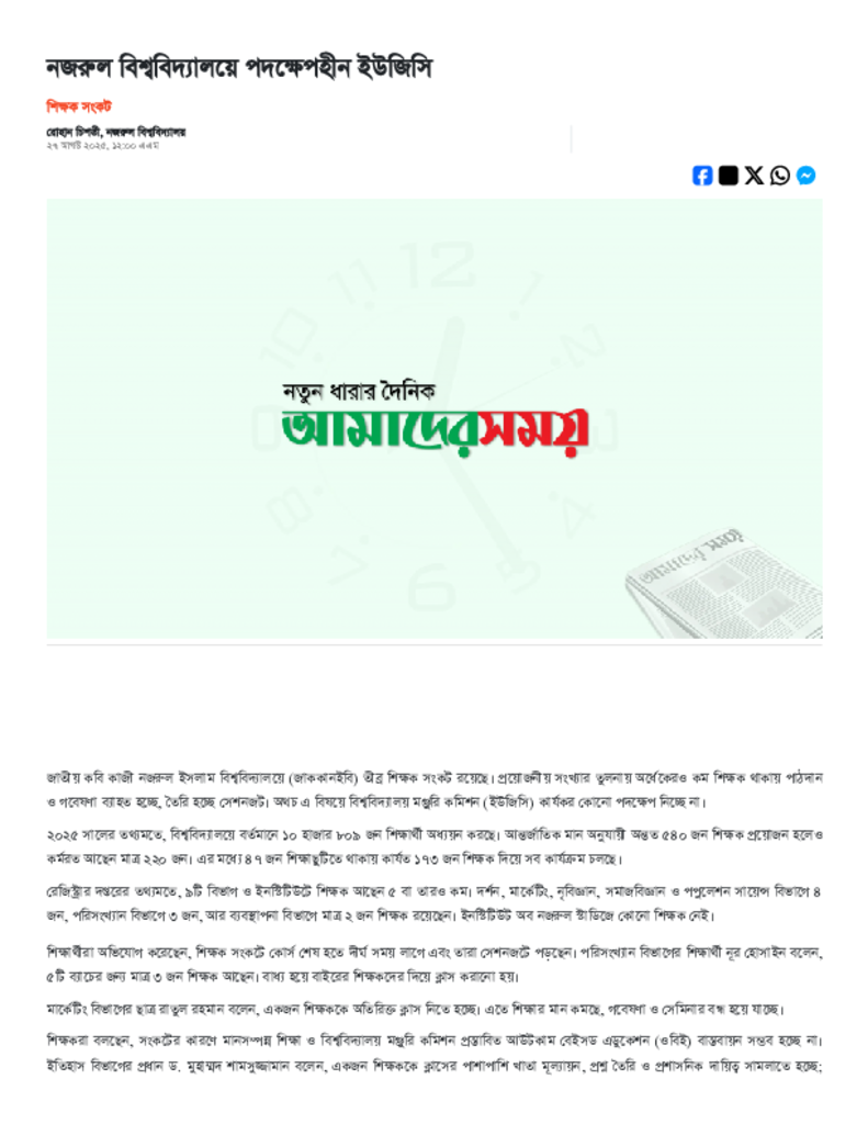 নজরুল বিশ্ববিদ্যালয়ে পদক্ষেপহীন ইউজিসি.pdf Published on 27 August 2025 Newspaper দৈনিক আমাদের সময় Category Personal Opinion / Discussion / Commentary General Education Download