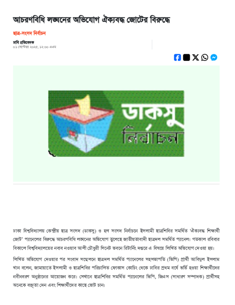 আচরণবিধি লঙ্ঘনের অভিযোগ ঐক্যবদ্ধ জোটের বিরুদ্ধে.pdf Published on 01 September 2025 Newspaper দৈনিক আমাদের সময় Category Student Politics General Education Download