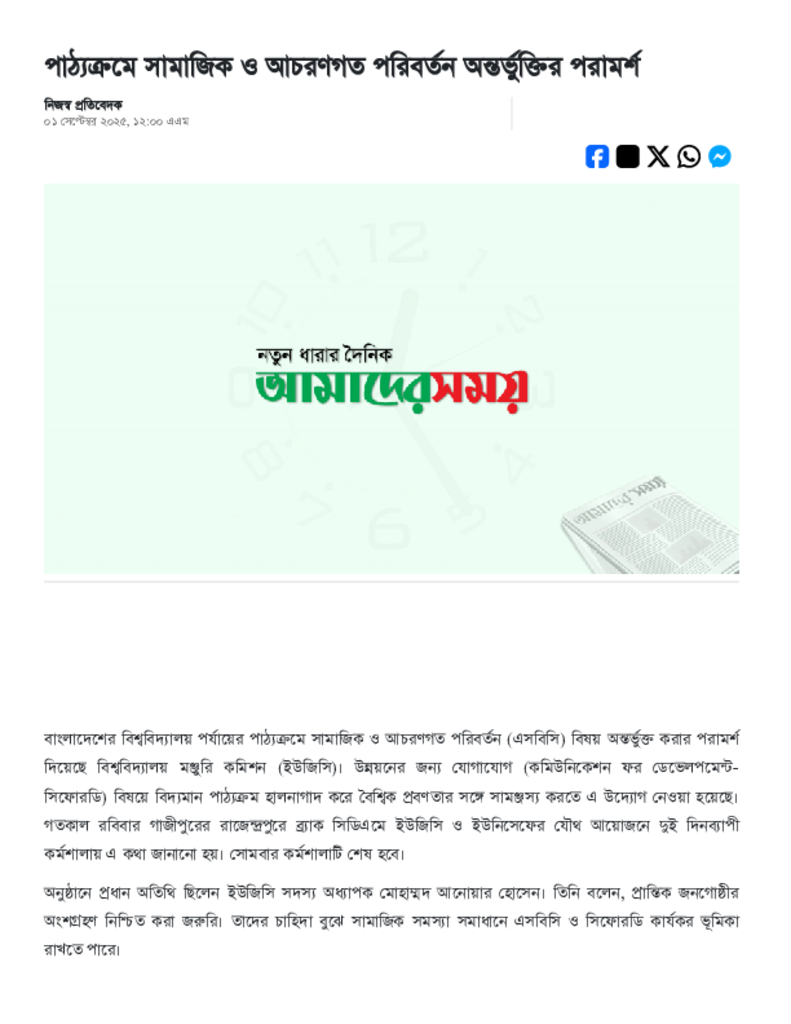 পাঠ্যক্রমে সামাজিক ও আচরণগত পরিবর্তন অন্তর্ভুক্তির পরামর্শ.pdf Published on 01 September 2025 Newspaper দৈনিক আমাদের সময় Category Educational Ministry / Departments Download