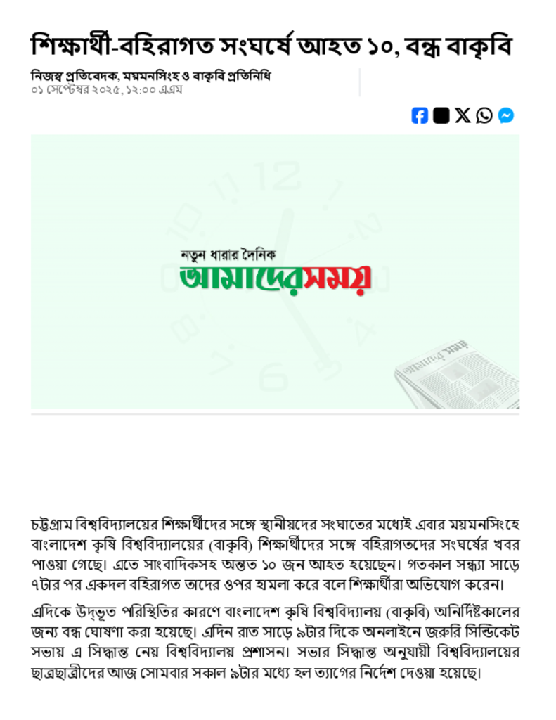 শিক্ষার্থী-বহিরাগত সংঘর্ষে আহত ১০, বন্ধ বাকৃবি.pdf Published on 01 September 2025 Newspaper দৈনিক আমাদের সময় Category Campus Terrorism General Education Download