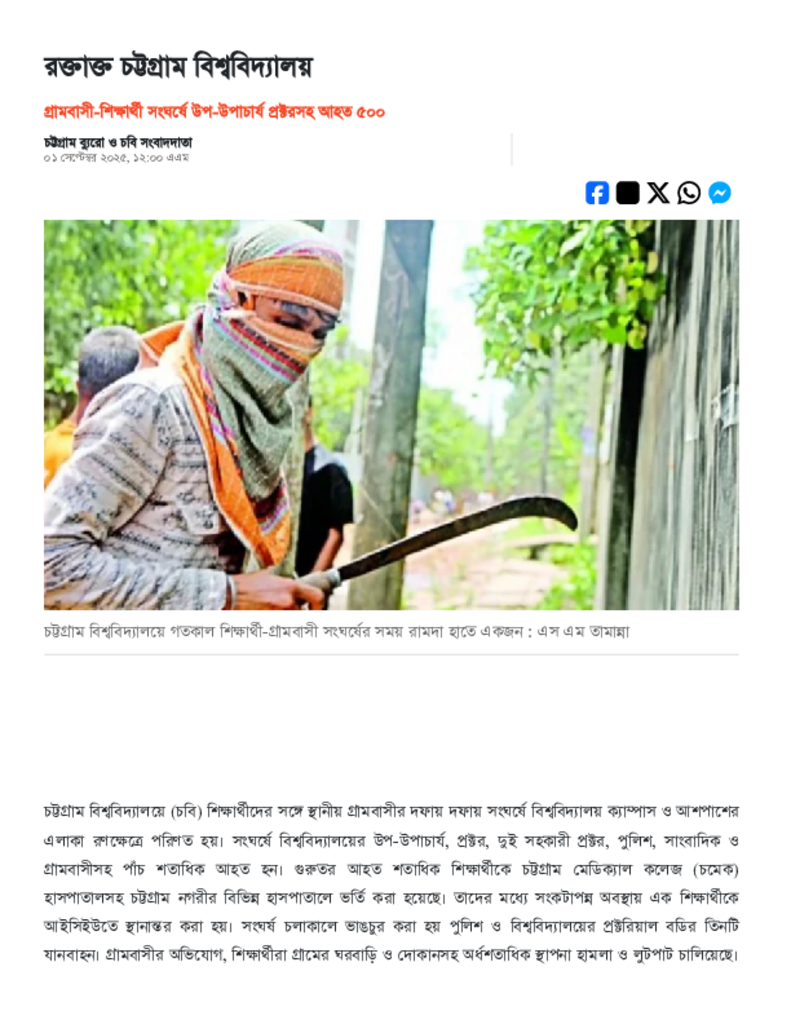 রক্তাক্ত চট্টগ্রাম বিশ্ববিদ্যালয়.pdf Published on 01 September 2025 Newspaper দৈনিক আমাদের সময় Category Campus Terrorism General Education Download