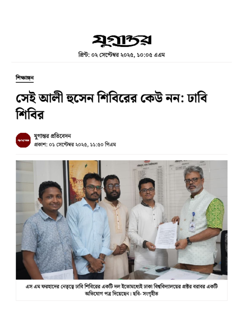 সেই আলী হুসেন শিবিরের কেউ নন_ ঢাবি শিবির.pdf Published on 01 September 2025 Newspaper দৈনিক যুগান্তর Category Student Politics General Education Download