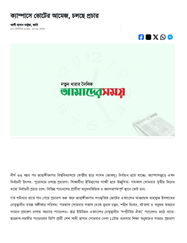 ক্যাম্পাসে ভোটের আমেজ, চলছে প্রচার.pdf Published on 02 September 2025 Newspaper দৈনিক আমাদের সময় Category Student Politics General Education Download