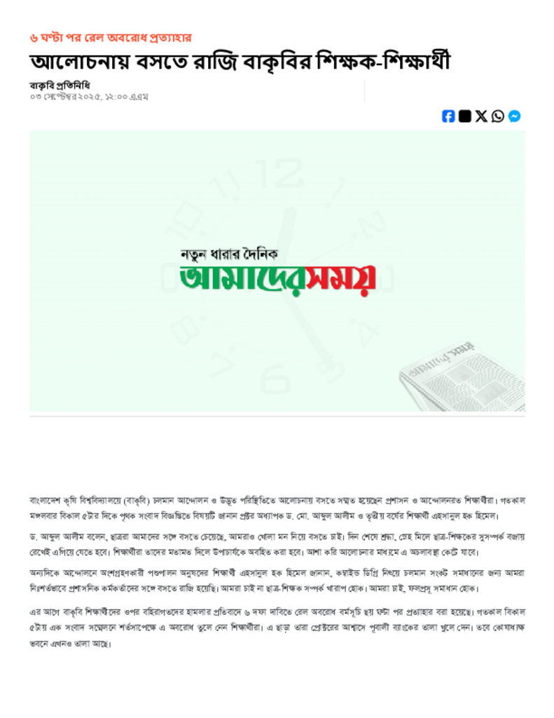আলোচনায় বসতে রাজি বাকৃবির শিক্ষক-শিক্ষার্থী.pdf Published on 03 September 2025 Newspaper দৈনিক আমাদের সময় Category Personal Opinion / Discussion / Commentary General Education Download