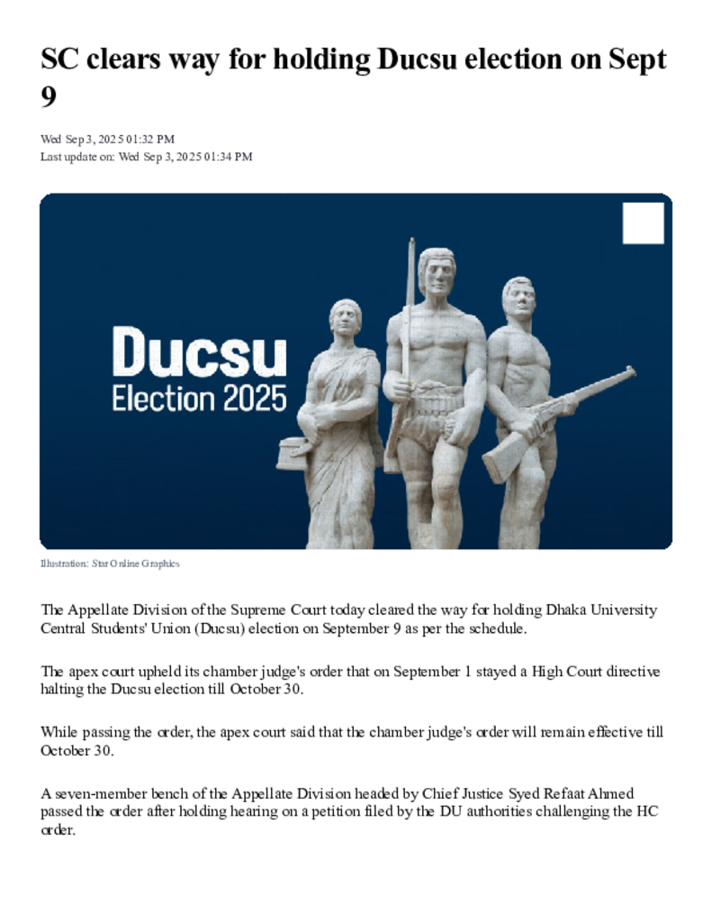 SC clears way for holding Ducsu election on Sept 9 _ The Daily Star.pdf Published on 03 September 2025 Newspaper The Daily Star Category Student Politics Download