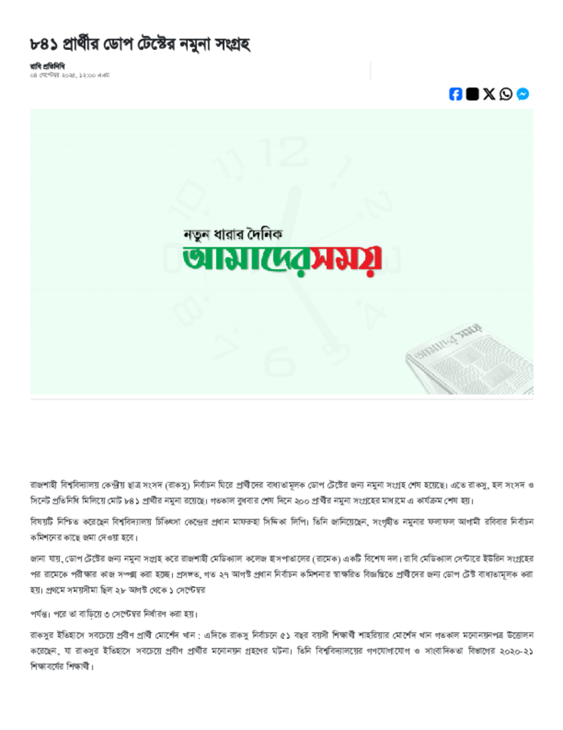 ৮৪১ প্রার্থীর ডোপ টেস্টের নমুনা সংগ্রহ.pdf Published on 04 September 2025 Newspaper দৈনিক আমাদের সময় Category Student Politics Download