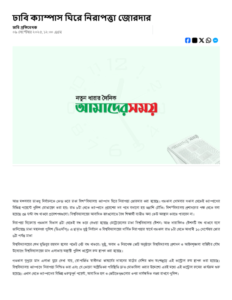ঢাবি ক্যাম্পাস ঘিরে নিরাপত্তা জোরদার.pdf Published on 09 September 2025 Newspaper দৈনিক আমাদের সময় Category Others General Education Download