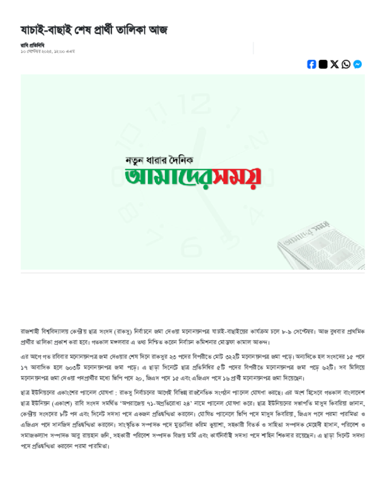 যাচাই-বাছাই শেষ প্রার্থী তালিকা আজ.pdf Published on 10 September 2025 Newspaper দৈনিক আমাদের সময় Category Student Politics Download