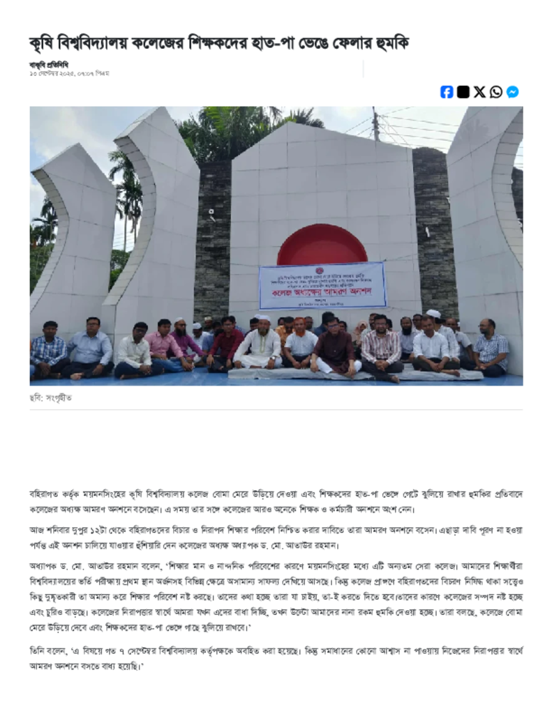 কৃষি বিশ্ববিদ্যালয় কলেজের শিক্ষকদের হাত-পা ভেঙে ফেলার হুমকি.pdf Published on 13 September 2025 Newspaper দৈনিক আমাদের সময় Category Campus Terrorism General Education Download