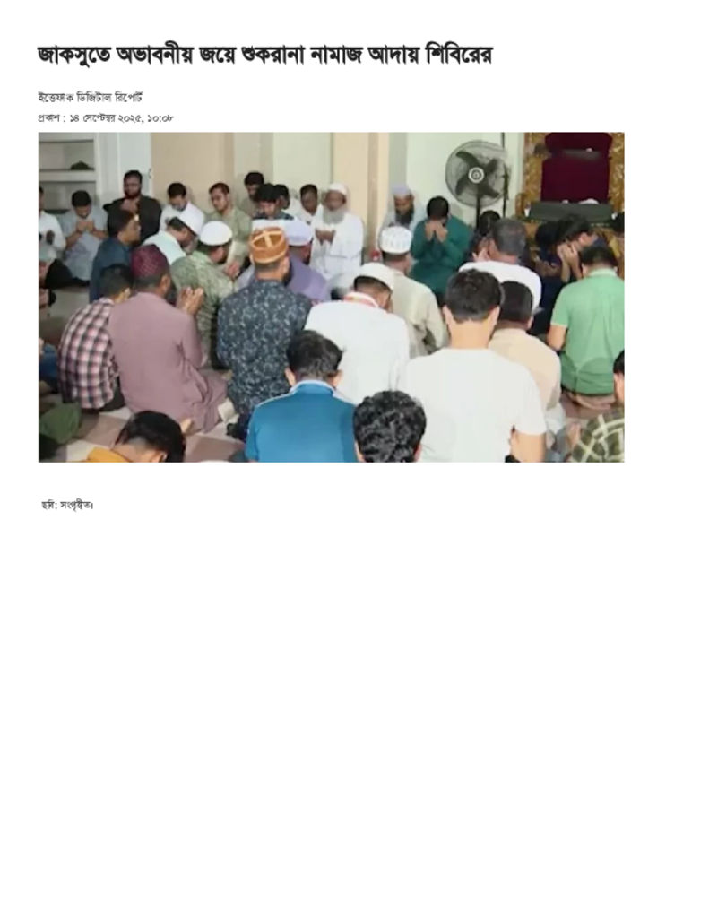 জাকসুতে অভাবনীয় জয়ে শুকরানা নামাজ আদায় শিবিরের.pdf Published on 14 September 2025 Newspaper দৈনিক ইত্তেফাক Category Student Politics Download