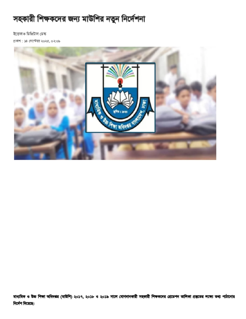 সহকারী শিক্ষকদের জন্য মাউশির নতুন নির্দেশনা.pdf Published on 14 September 2025 Newspaper দৈনিক ইত্তেফাক Category Educational Ministry / Departments Download