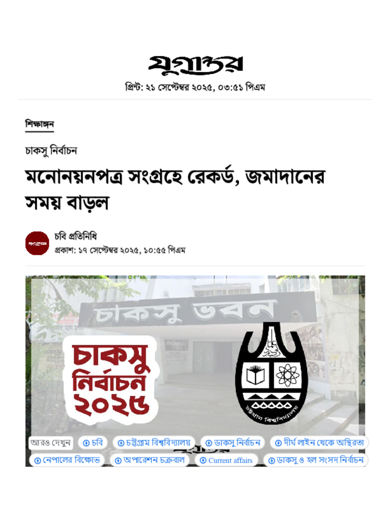 মনোনয়নপত্র সংগ্রহে রেকর্ড, জমাদানের সময় বাড়ল.pdf Published on 17 September 2025 Newspaper দৈনিক যুগান্তর Category Student Politics Download