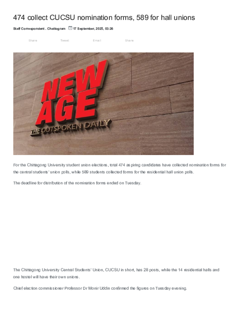 New Age _ 474 collect CUCSU nomination forms, 589 for hall unions.pdf Published on 17 September 2025 Newspaper New Age Category Student Politics General Education Download