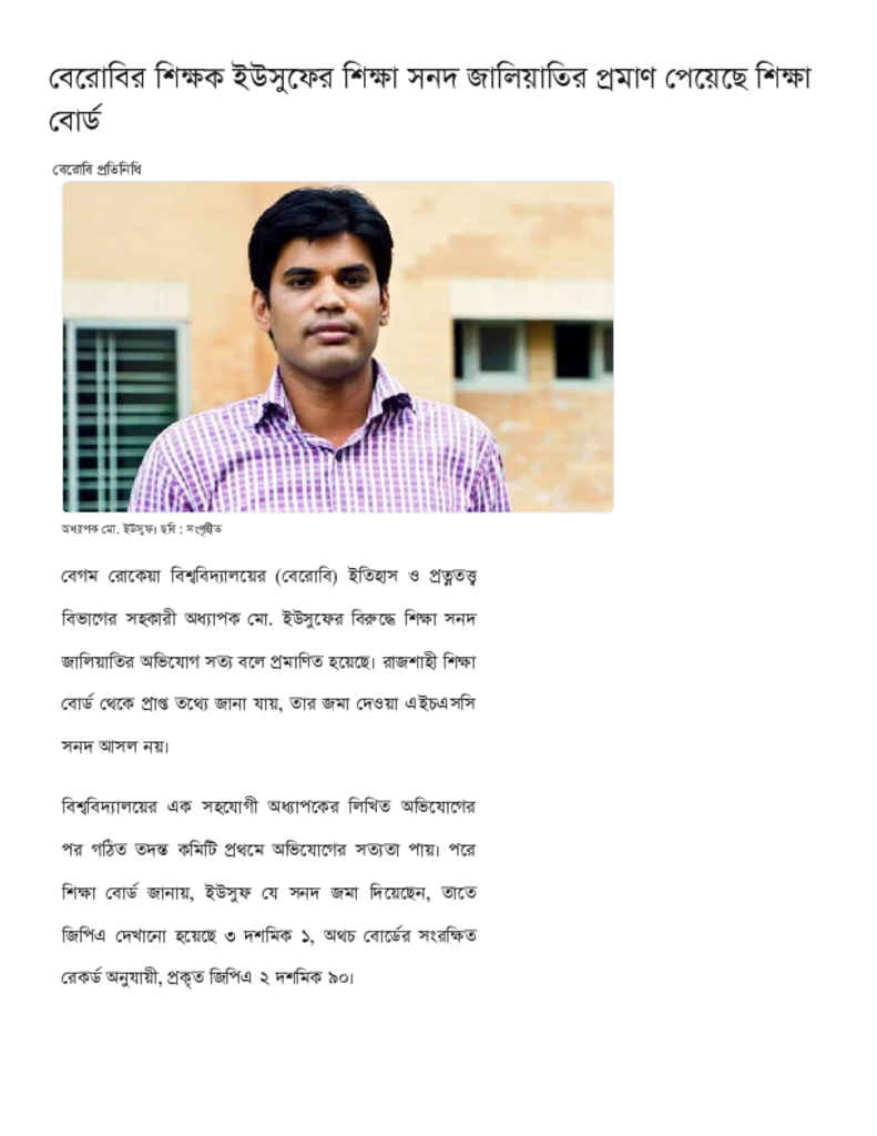 বেরোবির শিক্ষক ইউসুফের শিক্ষা সনদ জালিয়াতির প্রমাণ পেয়েছে শিক্ষা বোর্ড.pdf Published on 18 September 2025 Newspaper দৈনিক কালের কন্ঠ Category Educational Ministry / Departments Education Ministry / Division / Directorate Download