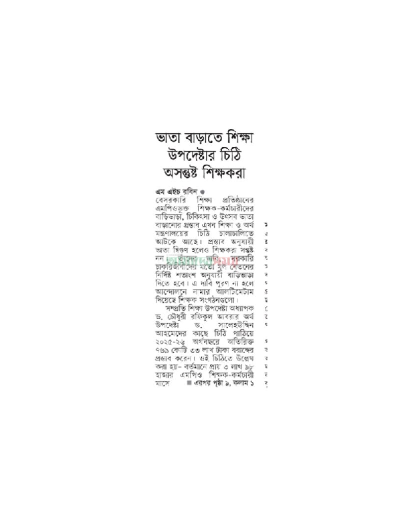 ভাতা বাড়াতে শিক্ষা উপদেষ্টার চিঠি অসন্তুষ্ট শিক্ষকরা.pdf Published on 20 September 2025 Newspaper দৈনিক আমাদের সময় Category Personal Opinion / Discussion / Commentary Download