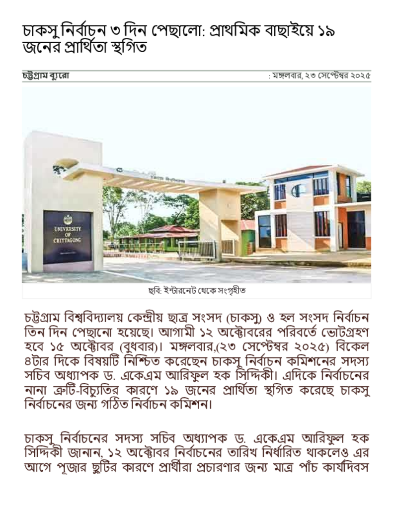 চাকসু নির্বাচন ৩ দিন পেছালো_ প্রাথমিক বাছাইয়ে ১৯ জনের প্রার্থিতা স্থগিত _ সংবাদ অনলাইন.pdf Published on 23 September 2025 Newspaper দৈনিক সংবাদ Category Student Politics General Education Download