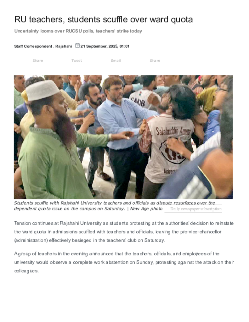 New Age _ RU teachers, students scuffle over ward quota.pdf Published on 21 September 2025 Newspaper New Age Category Others General Education Download