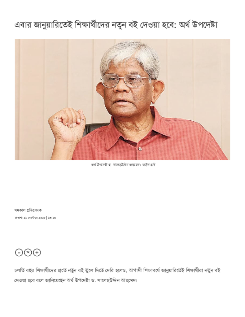 এবার জানুয়ারিতেই শিক্ষার্থীদের নতুন বই দেওয়া হবে_ অর্থ উপদেষ্টা.pdf Published on 21 September 2025 Newspaper দৈনিক সমকাল Category Educational Ministry / Departments Download
