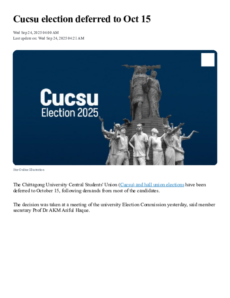 Cucsu polls deferred to Oct 15 _ [The Daily Star].pdf Published on 24 September 2025 Newspaper The Daily Star Category Student Politics General Education Download