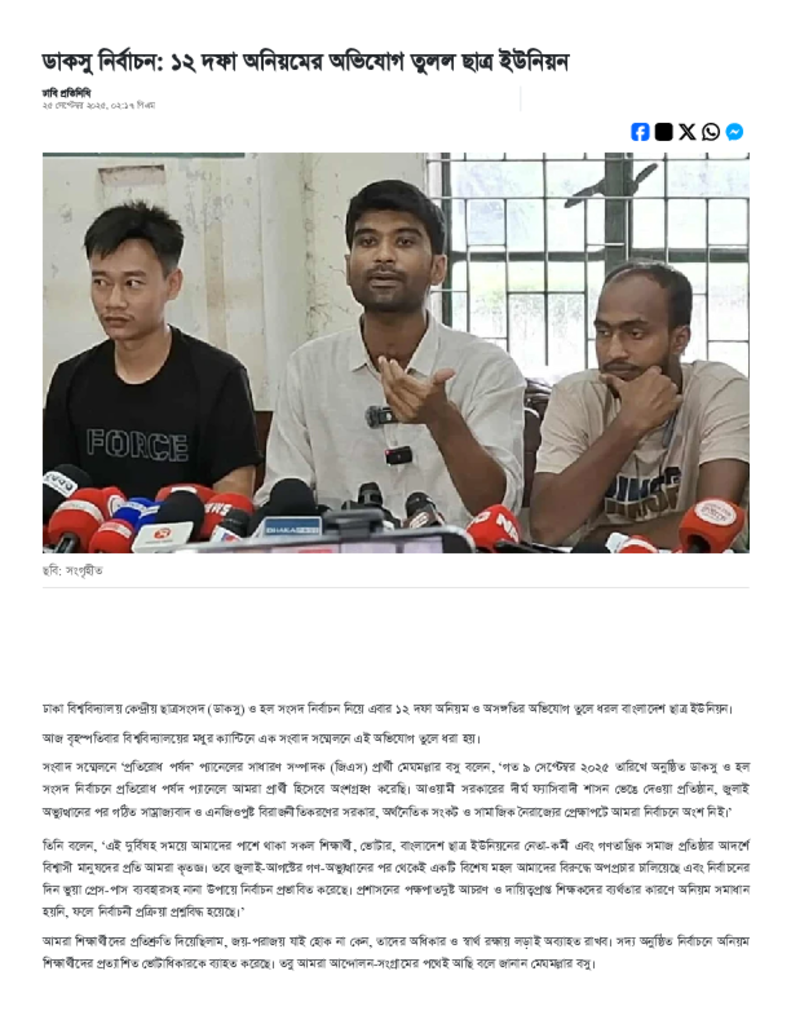 ডাকসু নির্বাচন_ ১২ দফা অনিয়মের অভিযোগ তুলল ছাত্র ইউনিয়ন.pdf Published on 25 September 2025 Newspaper দৈনিক আমাদের সময় Category Student Politics Download