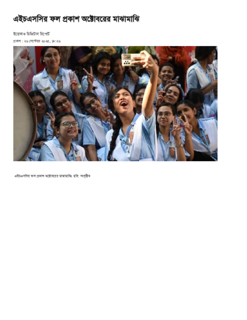 এইচএসসির ফল প্রকাশ অক্টোবরের মাঝামাঝি.pdf Published on 26 September 2025 Newspaper দৈনিক ইত্তেফাক Category Public Examination Public Examination SSC Download