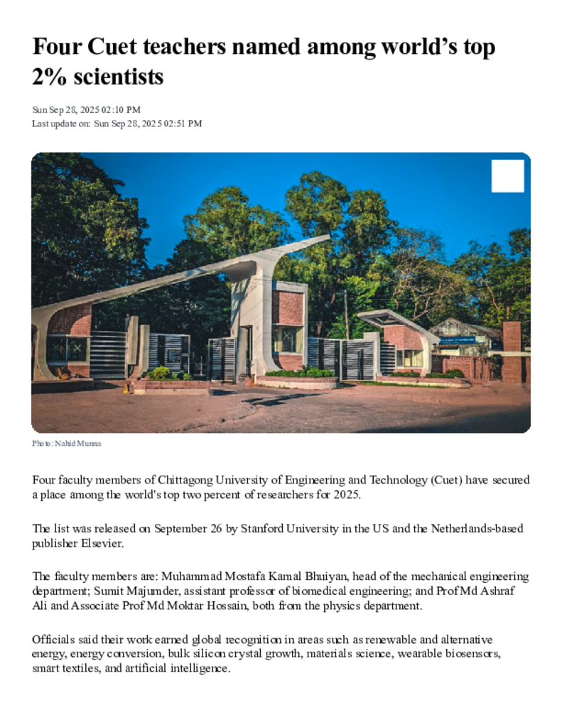 Four Cuet teachers named among world’s top 2% scientists _ The Daily Star.pdf Published on 28 September 2025 Newspaper The Daily Star Category Others General Education Download