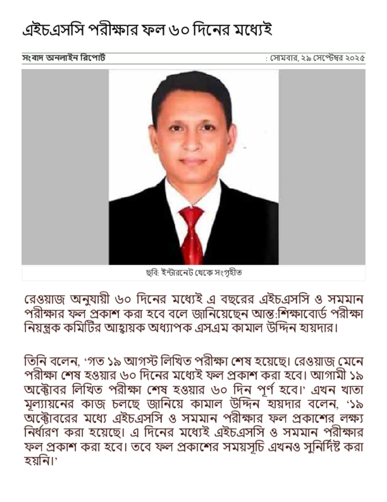এইচএসসি পরীক্ষার ফল ৬০ দিনের মধ্যেই _ সংবাদ অনলাইন.pdf Published on 29 September 2025 Newspaper দৈনিক সংবাদ Category Educational Ministry / Departments Education Ministry / Division / Directorate Download