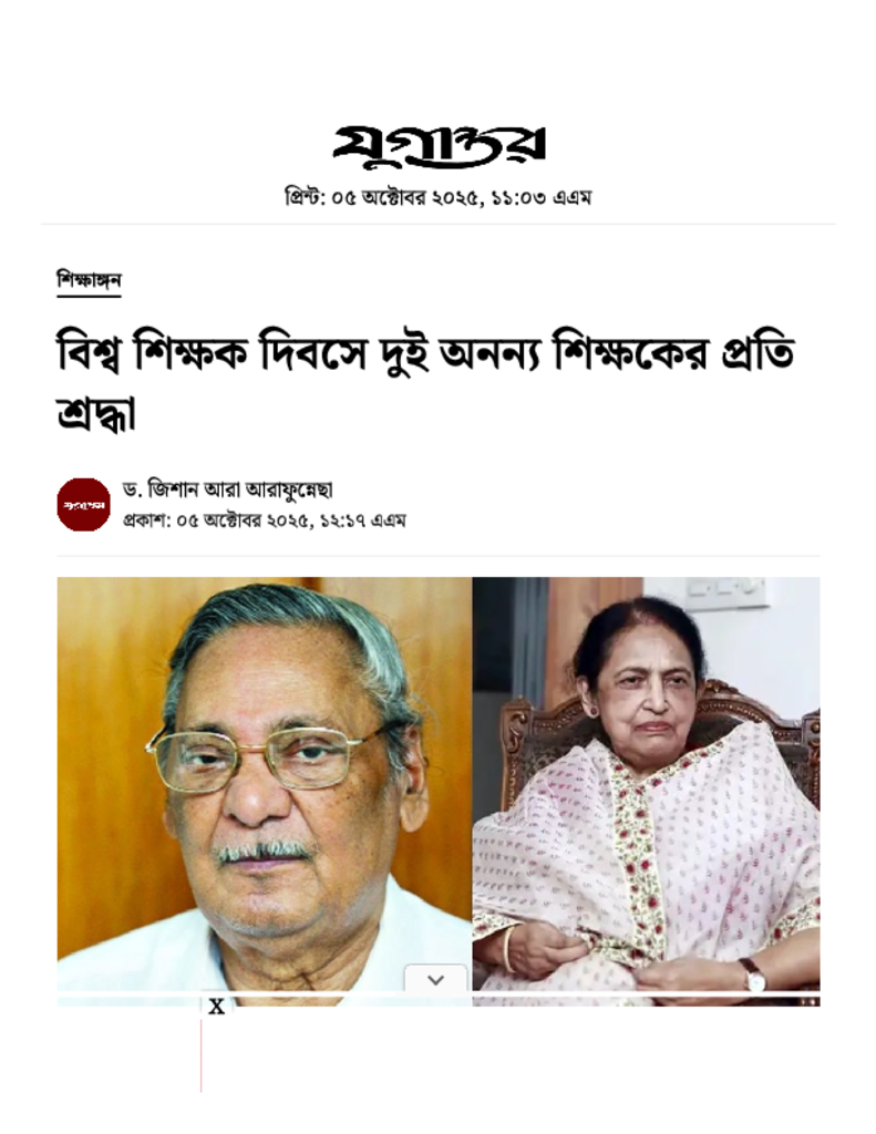 বিশ্ব শিক্ষক দিবসে দুই অনন্য শিক্ষকের প্রতি শ্রদ্ধা.pdf Published on 05 October 2025 Newspaper দৈনিক যুগান্তর Category Personal Opinion / Discussion / Commentary Download