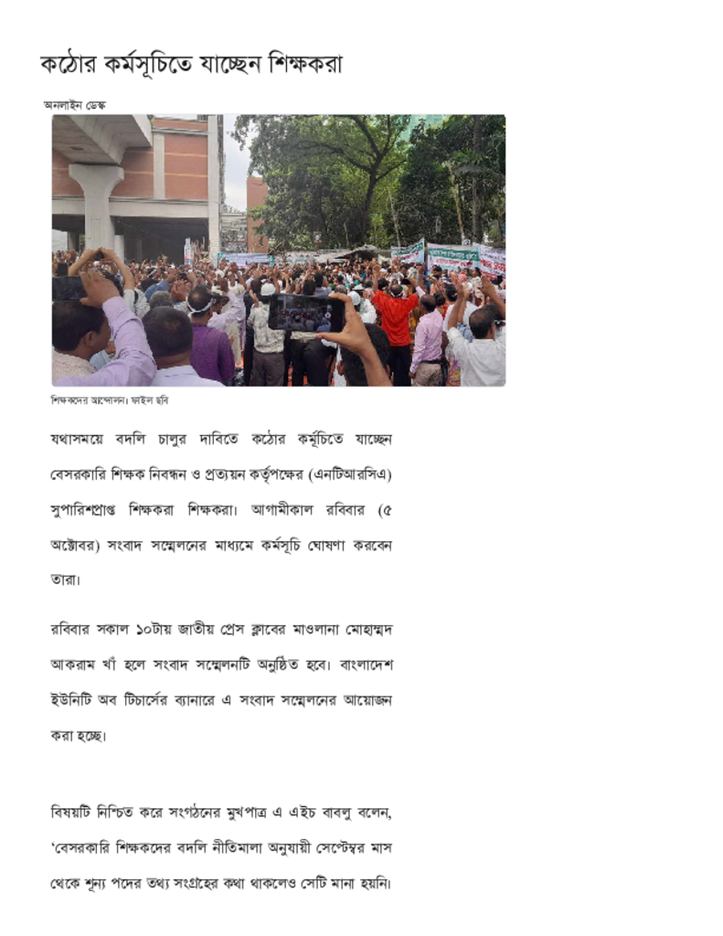 কঠোর কর্মসূচিতে যাচ্ছেন শিক্ষকরা.pdf Published on 04 October 2025 Newspaper দৈনিক কালের কন্ঠ Category Educational Ministry / Departments Download