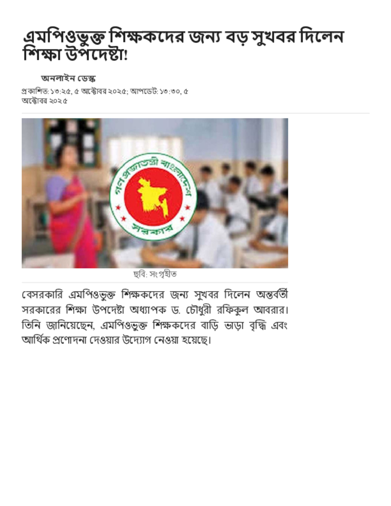 এমপিওভুক্ত শিক্ষকদের জন্য বড় সুখবর দিলেন শিক্ষা উপদেষ্টা!.pdf Published on 05 October 2025 Newspaper দৈনিক জনকণ্ঠ Category Educational Ministry / Departments Download
