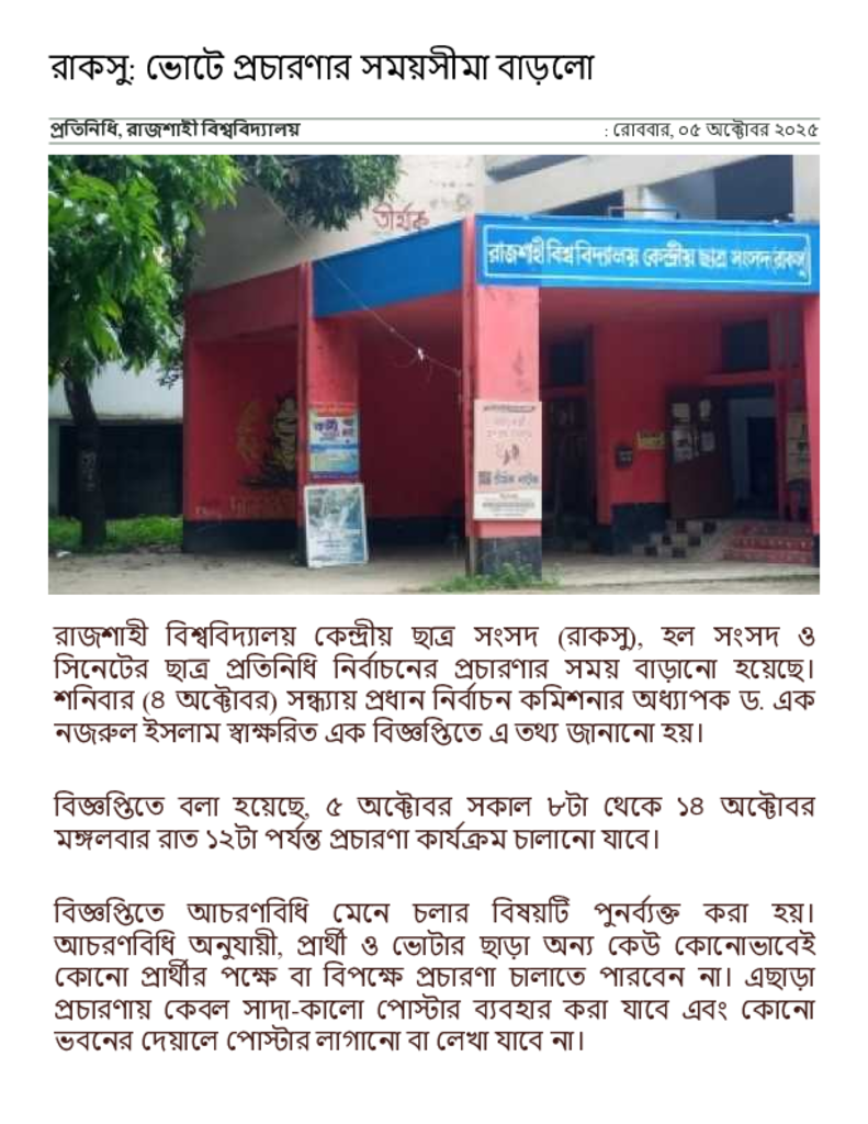 রাকসু_ ভোটে প্রচারণার সময়সীমা বাড়লো _ সংবাদ অনলাইন.pdf Published on 05 October 2025 Newspaper দৈনিক সংবাদ Category Student Politics General Education Download