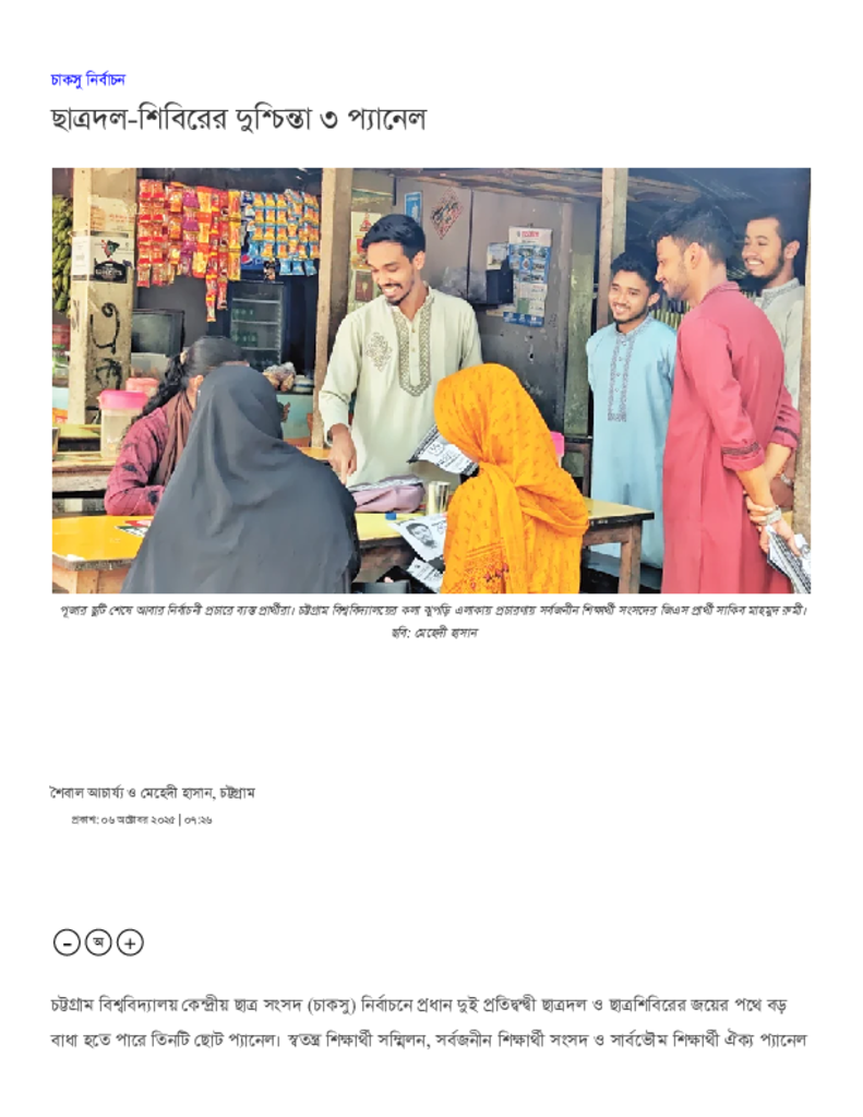 ছাত্রদল-শিবিরের দুশ্চিন্তা ৩ প্যানেল.pdf Published on 06 October 2025 Newspaper দৈনিক সমকাল Category Student Politics Download