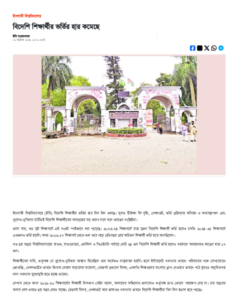 বিদেশি শিক্ষার্থীর ভর্তির হার কমেছে.pdf Published on 01 October 2025 Newspaper দৈনিক আমাদের সময় Category Personal Opinion / Discussion / Commentary General Education Download