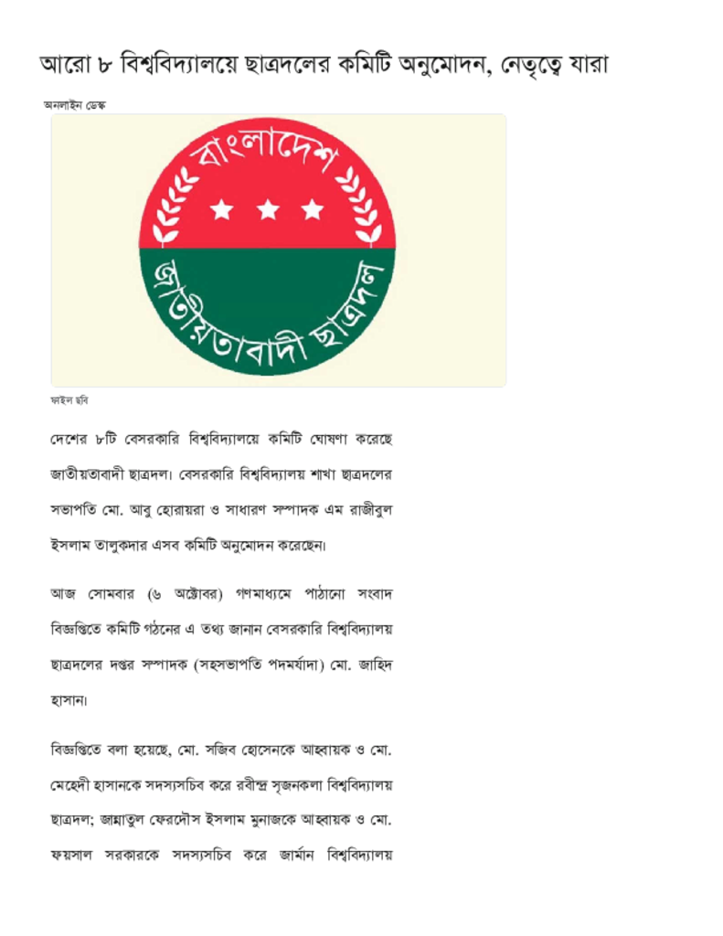 আরো ৮ বিশ্ববিদ্যালয়ে ছাত্রদলের কমিটি অনুমোদন, নেতৃত্বে যারা.pdf Published on 06 October 2025 Newspaper দৈনিক কালের কন্ঠ Category Student Politics General Education Download