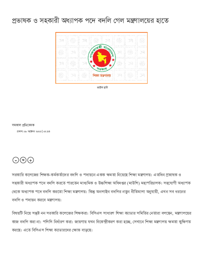 প্রভাষক ও সহকারী অধ্যাপক পদে বদলি গেল মন্ত্রণালয়ের হাতে.pdf Published on 08 October 2025 Newspaper দৈনিক সমকাল Category Educational Ministry / Departments Download