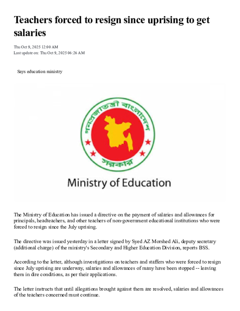 Teachers forced to resign since uprising to get salaries _ The Daily Star.pdf
