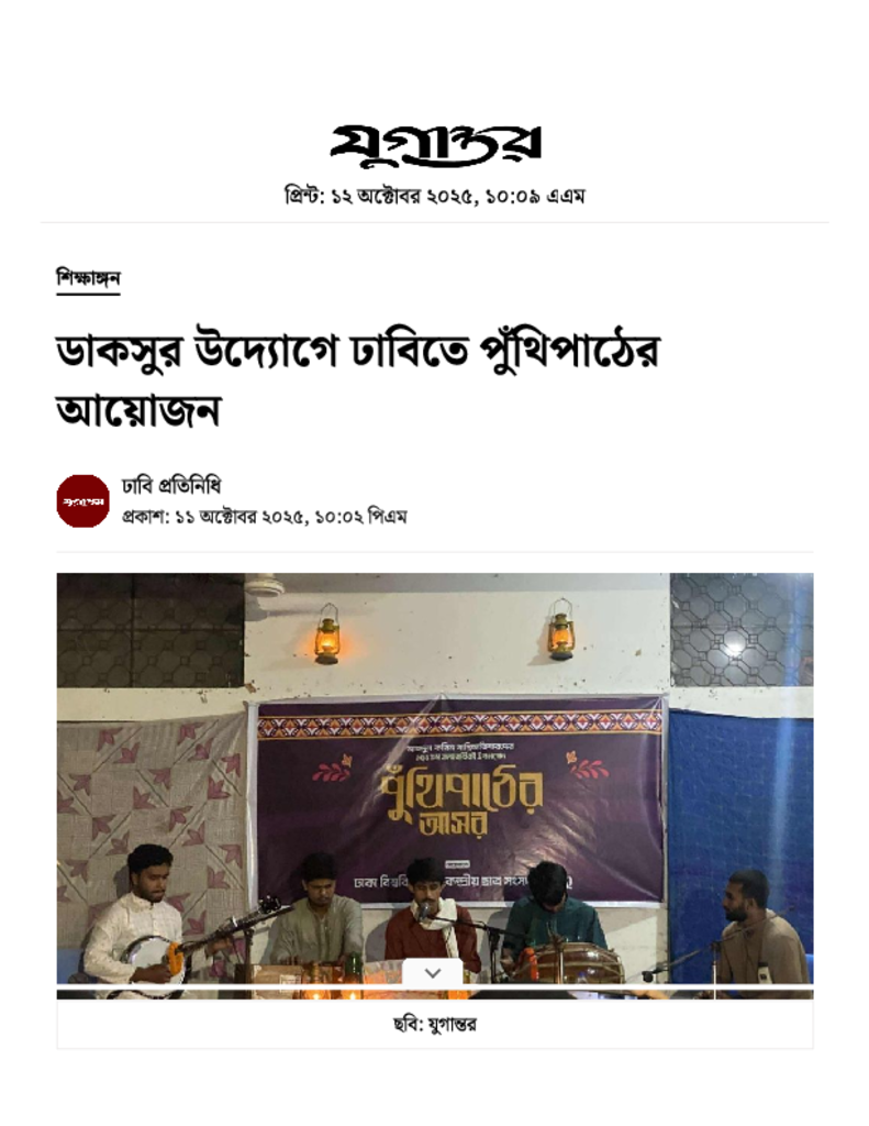 ডাকসুর উদ্যোগে ঢাবিতে পুঁথিপাঠের আয়োজন.pdf Published on 11 October 2025 Newspaper দৈনিক যুগান্তর Category Others General Education Download