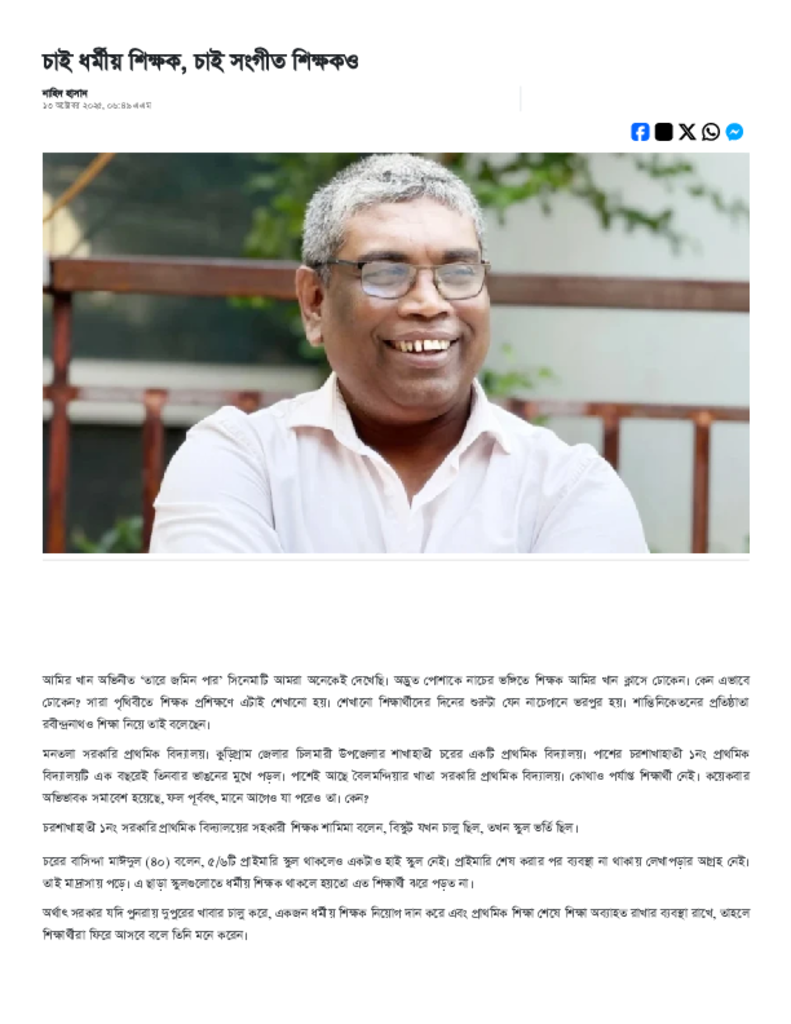 চাই ধর্মীয় শিক্ষক, চাই সংগীত শিক্ষকও.pdf Published on 13 October 2025 Newspaper দৈনিক আমাদের সময় Category Personal Opinion / Discussion / Commentary Download