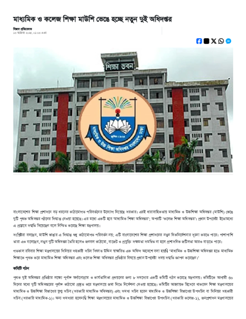 মাউশি ভেঙে হচ্ছে পৃথক দুই অধিদপ্তর.pdf Published on 13 October 2025 Newspaper দৈনিক আমাদের সময় Category Educational Ministry / Departments General Education Download