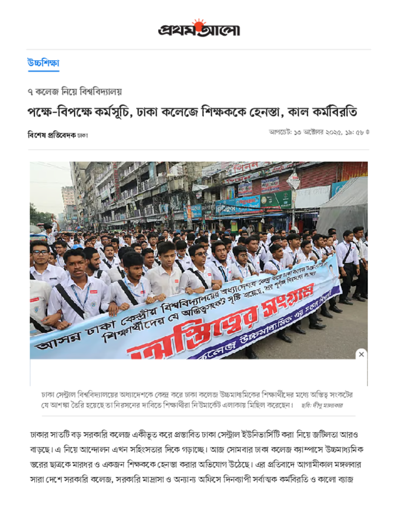 পক্ষে–বিপক্ষে কর্মসূচি, ঢাকা কলেজে শিক্ষককে হেনস্তা, কাল কর্মবিরতি.pdf Published on 13 October 2025 Newspaper দৈনিক প্রথম আলো Category Others General Education Download