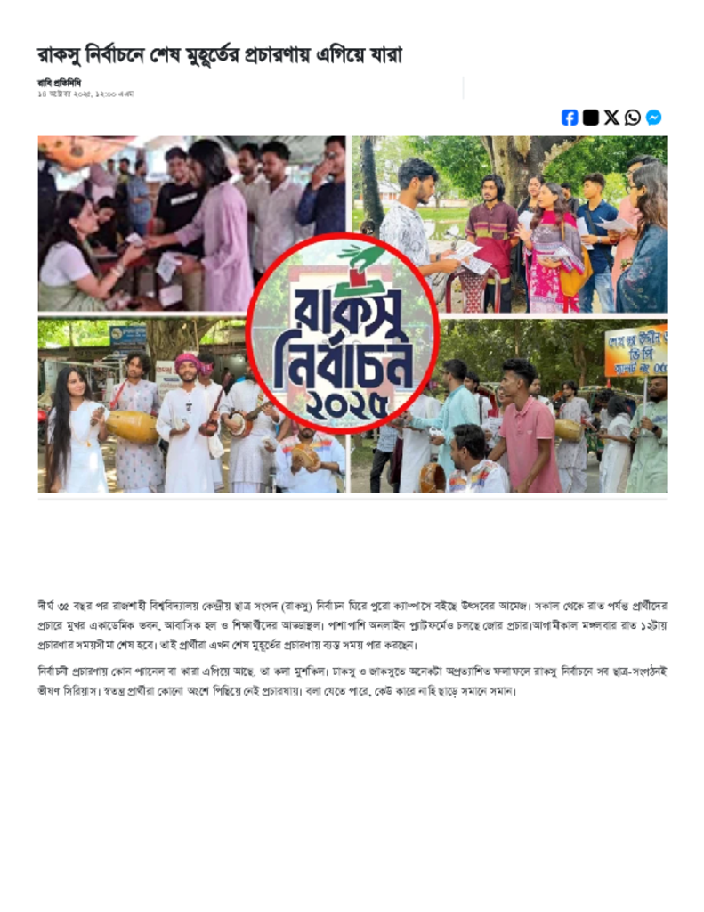 রাকসু নির্বাচনে শেষ মুহূর্তের প্রচারণায় এগিয়ে যারা.pdf Published on 14 October 2025 Newspaper দৈনিক আমাদের সময় Category Student Politics General Education Download