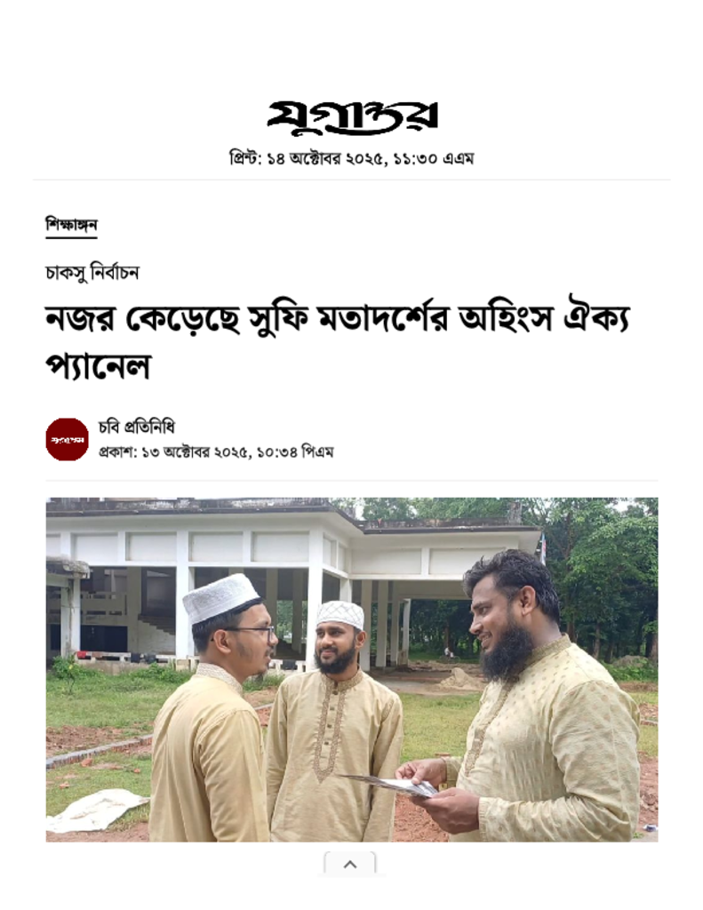 নজর কেড়েছে সুফি মতাদর্শের অহিংস ঐক্য প্যানেল.pdf Published on 13 October 2025 Newspaper দৈনিক যুগান্তর Category Student Politics General Education Download