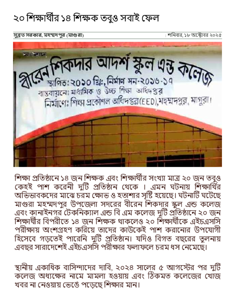 ২০ শিক্ষার্থীর ১৪ শিক্ষক তবুও সবাই ফেল _ সংবাদ অনলাইন.pdf Published on 18 October 2025 Newspaper দৈনিক সংবাদ Category Public Examination Public Examination HSC Download