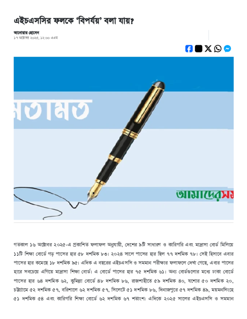 এইচএসসির ফলকে ‘বিপর্যয়’ বলা যায়_.pdf Published on 17 October 2025 Newspaper দৈনিক আমাদের সময় Category Personal Opinion / Discussion / Commentary Public Examination HSC Download