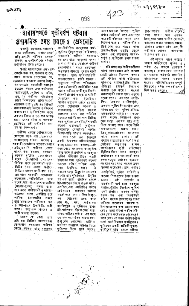 নারায়ণগঞ্জে পুলীবর্ষণ ঘটনার প্রশানিক তদন্ত চলছেঃ প্রেসনোট Published on Newspaper দৈনিক সংবাদ Category General Education Download