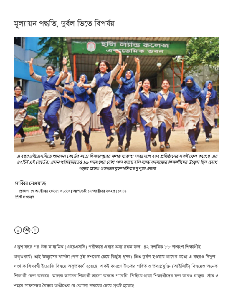 মূল্যায়ন পদ্ধতি, দুর্বল ভিতে বিপর্যয়.pdf Published on 17 October 2025 Newspaper দৈনিক সমকাল Category Personal Opinion / Discussion / Commentary Public Examination HSC Download