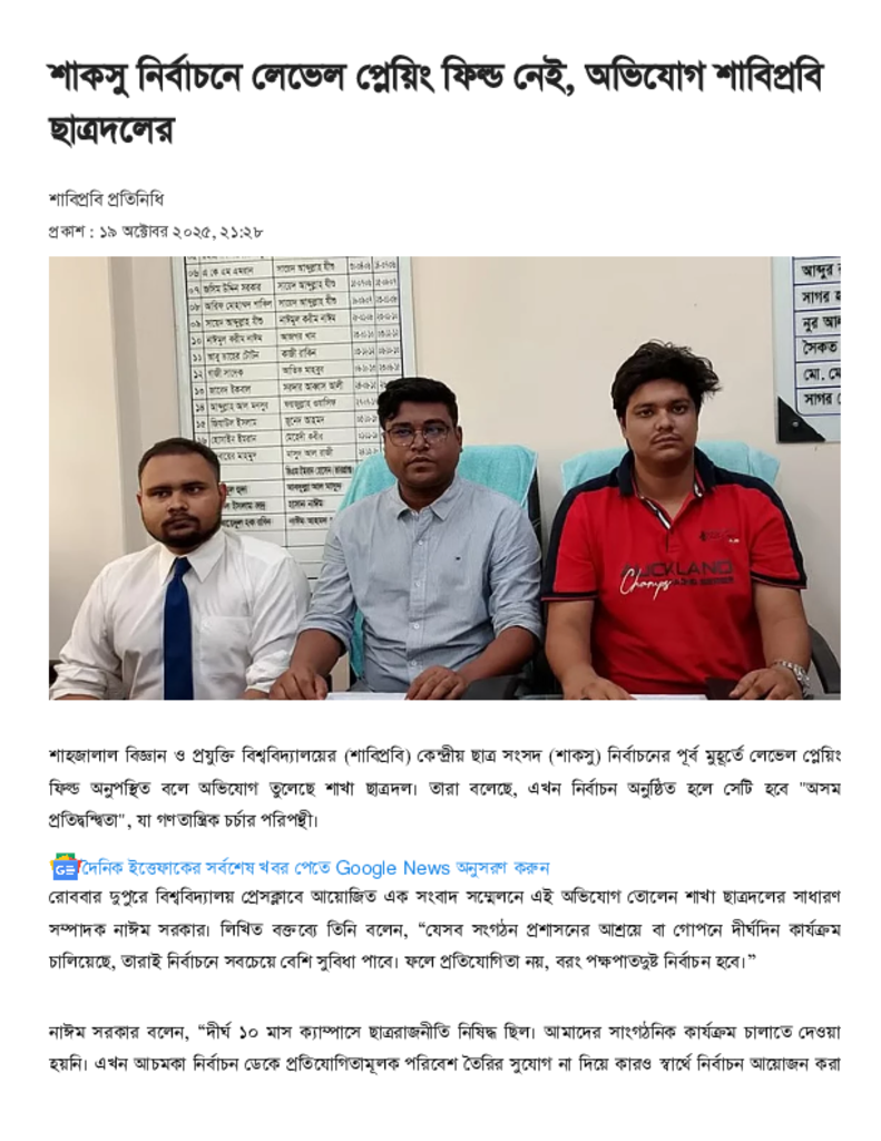 শাকসু নির্বাচনে লেভেল প্লেয়িং ফিল্ড নেই, অভিযোগ শাবিপ্রবি ছাত্রদলের.pdf