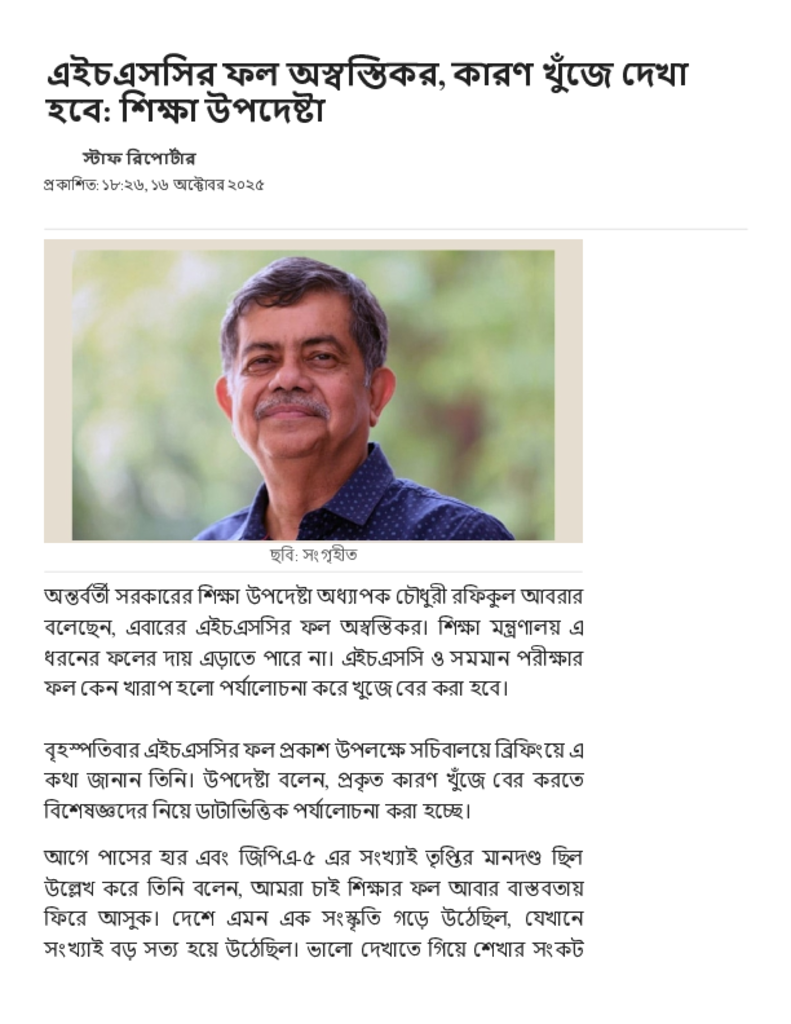 এইচএসসির ফল অস্বস্তিকর, কারণ খুঁজে দেখা হবে_ শিক্ষা উপদেষ্টা.pdf Published on 16 October 2025 Newspaper দৈনিক জনকণ্ঠ Category Public Examination Public Examination HSC Download